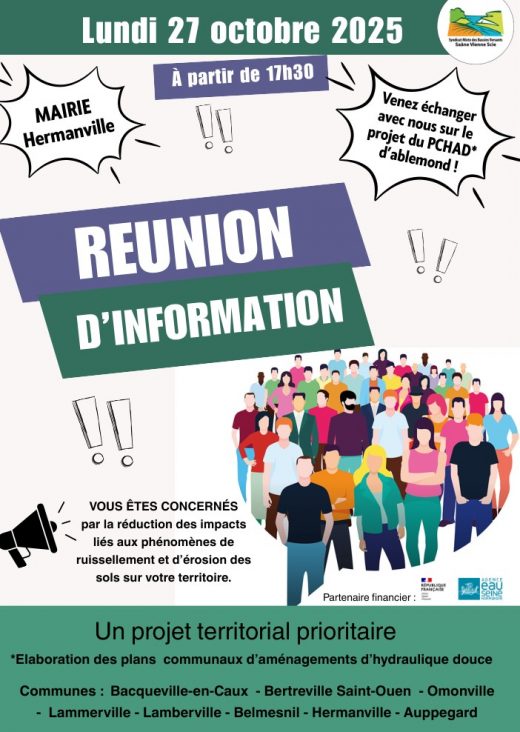 LE 27 octobre 2025 A 17H30 – Mairie de HermanvilleELABORATION DES PLANS COMMUNAUXD’AMENAGEMENT D’HYDRAULIQUE DOUCE➢ Pourquoi :Le SMBV couvre 102 communes sur un territoire supérieur à 500 km², notre échelled’actions est celle des bassins-versants dela suite…