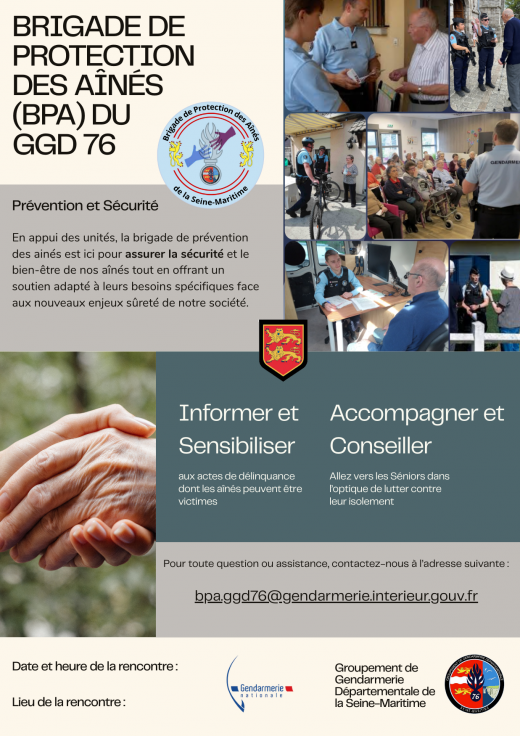 La Brigade de Prévention des Aînés de la Seine-Maritime invite les seniors à une réunion d’information consacrée à la prévention des vols, cambriolages, escroqueries ainsi qu’à la sensibilisation aux violences physiques et morales. Cette rencontrela suite…