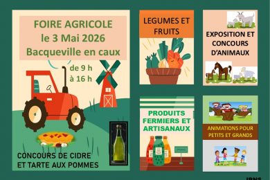 La commune de Bacqueville-en-Caux accueillera sa foire agricole le dimanche 3 mai 2026, de 9h à 16h. Cet événement convivial mettra à l’honneur le monde agricole et les savoir-faire locaux. Les visiteurs pourront découvrir unela suite…