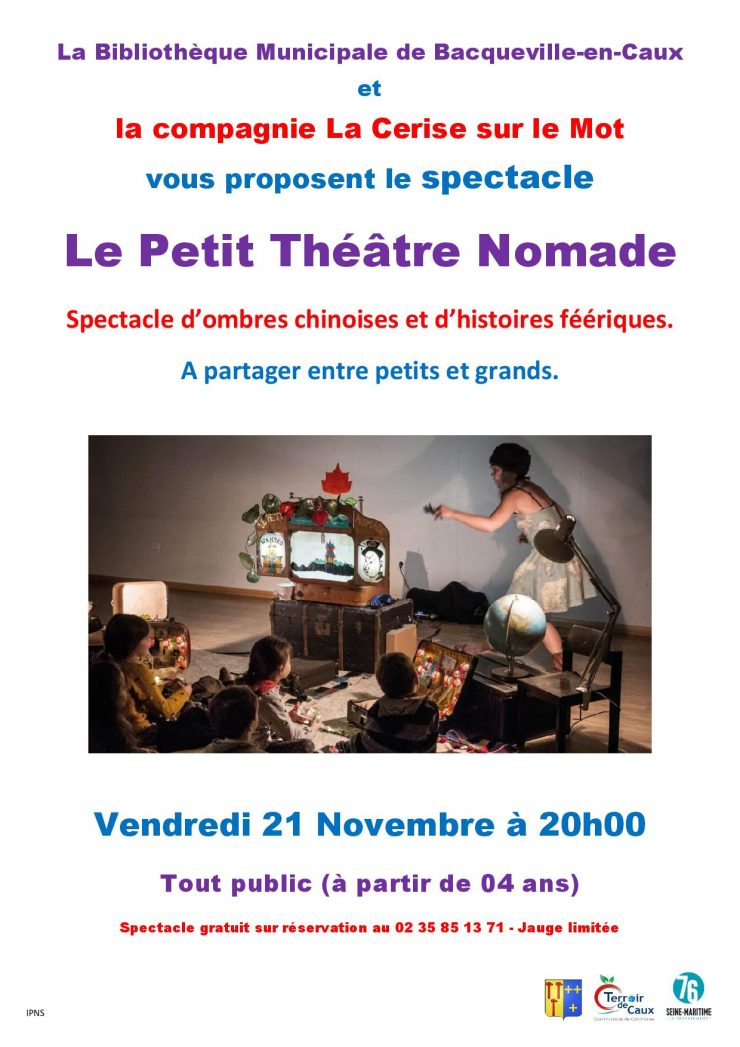 La bibliothèque municipale vous propose le spectacle enchanteur » Le petit théâtre nomade » présenté par la compagnie « La cerise sur mot » le :