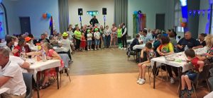 Avec 110 convives présents, la salle affichait complet. Le repas a contribué à installer une ambiance chaleureuse dès les premières minutes.