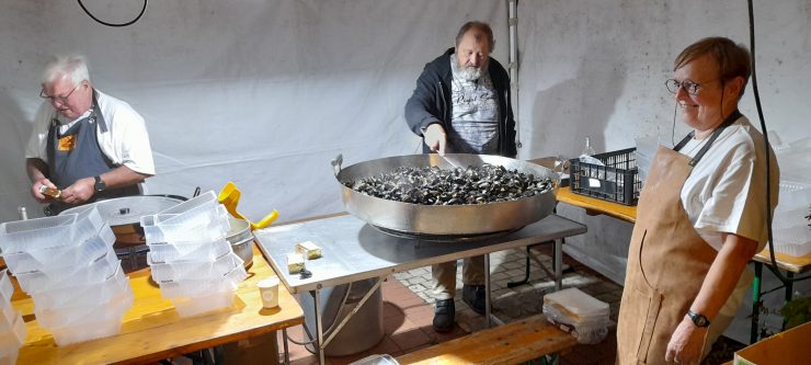 Depuis 2011, les bénévoles du Comité de Jumelage cuisinent 90 kg de moules et 60 kg de frites pour leurs convives.